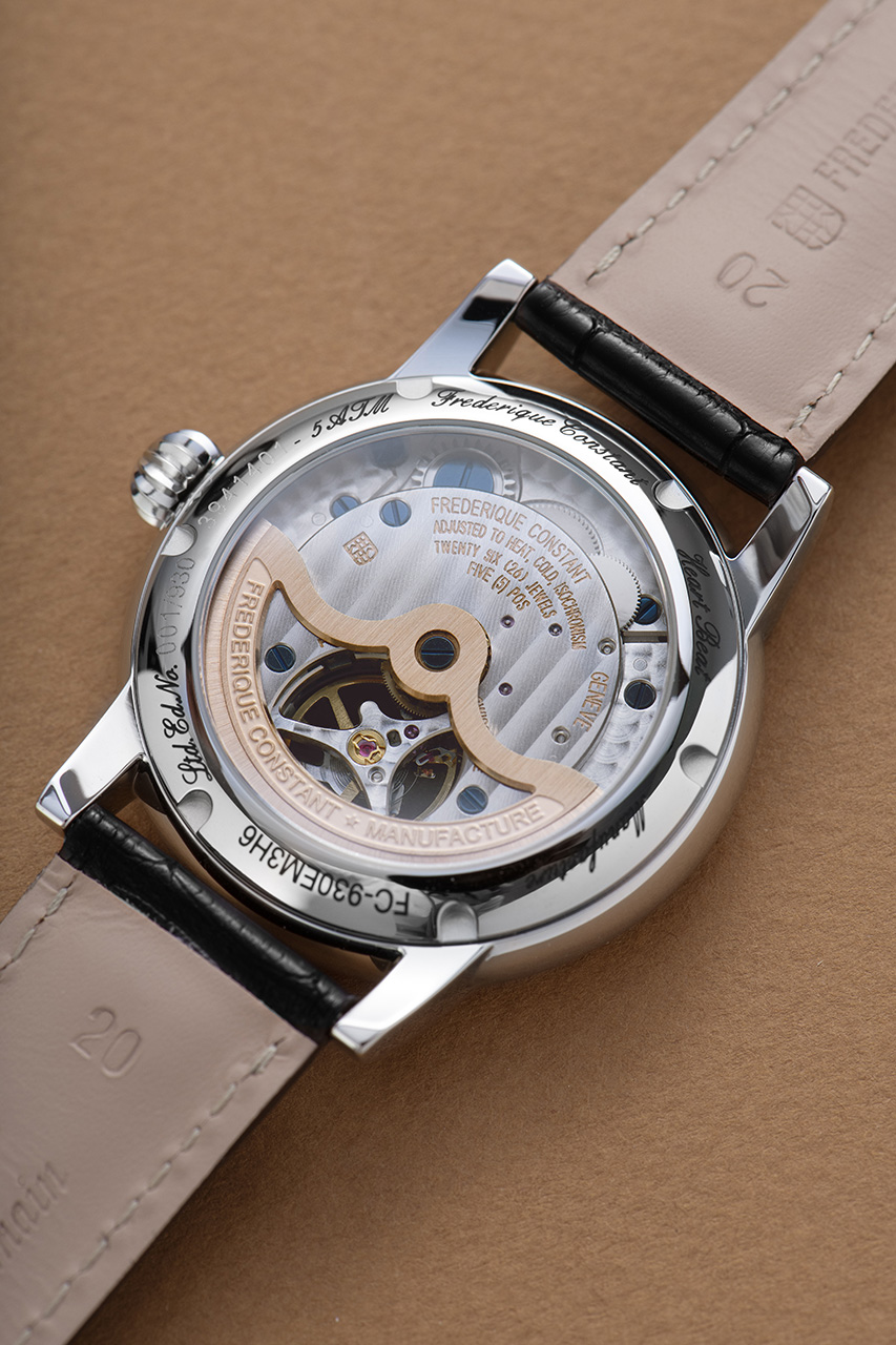 Культовая модель Frederique Constant представлена после редизайна. Часы Classics Heart Beat Manufacture с их подчеркнутым классицизмом и знаменитым окошком Heart Beat в положении «6 часов» предстали в оригинальном облике с новыми циферблатом, метками и корпусом диаметром 39 мм. Новинка выпускается в двух ограниченных версиях из розового золота 18 карат (93 экземпляра) и стали (930 экземпляров). Именно с Classics Heart Beat Manufacture началась эра мануфактурных механизмов в истории часового Дома. Новая модель также оснащена мануфактурным калибром FC-930-3, который является потомком FC-910 — первого механизма, разработанного внутри компании в 2004 году.