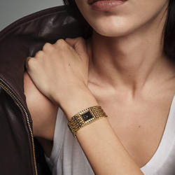 Модель Frederique Constant Classics Manchette представляет собой интерпретацию часов в формате жёсткого браслета. Конструкция состоит из звеньев с декоративным узором Clou de Paris, формирующих цельную поверхность с выраженной текстурой.