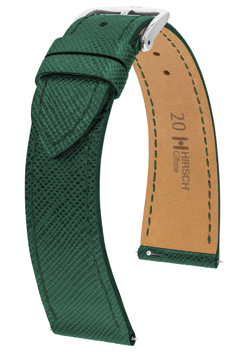 HIRSCH Giffone - лимитированная версия культового ремешка, выполненная в новом глубоком зелёном цвете. Это аксессуар для тех, кто ценит винтажный стиль, традиционное ремесло и премиальные материалы. Ремешок идеально подходит для классических и винтажных часов, подчёркивая их характер и статус.