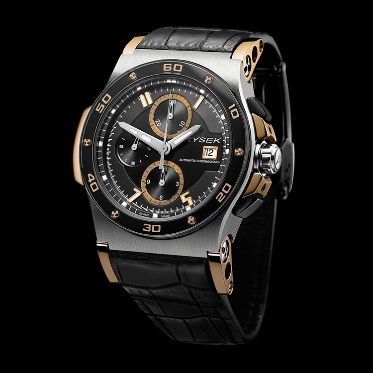 В первой половине этого года марка «Hysek» отпраздновала десять лет со дня начала выпуска авангардной и ставшей за эти годы очень популярной коллекции «Abyss». В честь этого события марка создала серию мужских часов, состоящую из четырёх автоматических хронографов «Abyss 44mm Chronograph 10th Anniversary Titanium and Rose Gold», сочетающих в себе, как это следует из названия, два разных по характеру материала, символизирующих технократизм и роскошь.