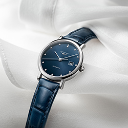 Компания Longines в новой интерпретации коллекции привносит в дизайн часов современные элементы, сохраняя при этом классические черты. Циферблат синего цвета с узором «солнечные лучи» украшен бриллиантовыми индексами. Крепление часов представлено в двух вариантах: ремешком из кожи аллигатора синего цвета или браслетом из нержавеющей стали.