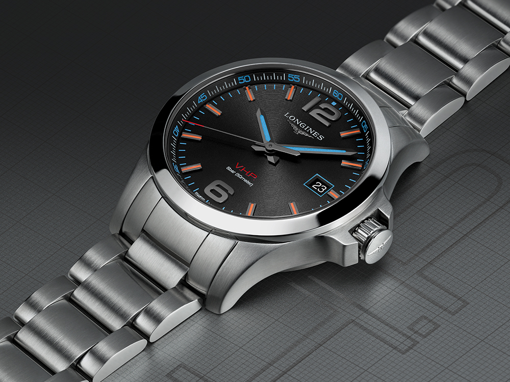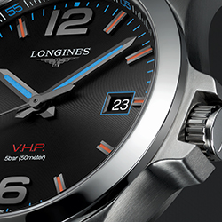Часы Conquest V.H.P.* — новое достижение в области кварцевых часов — сочетают в себе высокую точность совершенного механизма, спортивный внешний вид и элегантность, характерные для марки Longines. При создании модели Conquest V.H.P. производитель часов применил технологии, в которых является признанным экспертом. Разработки в области хронометража прославили бренд еще в 80-е годы прошлого столетия.