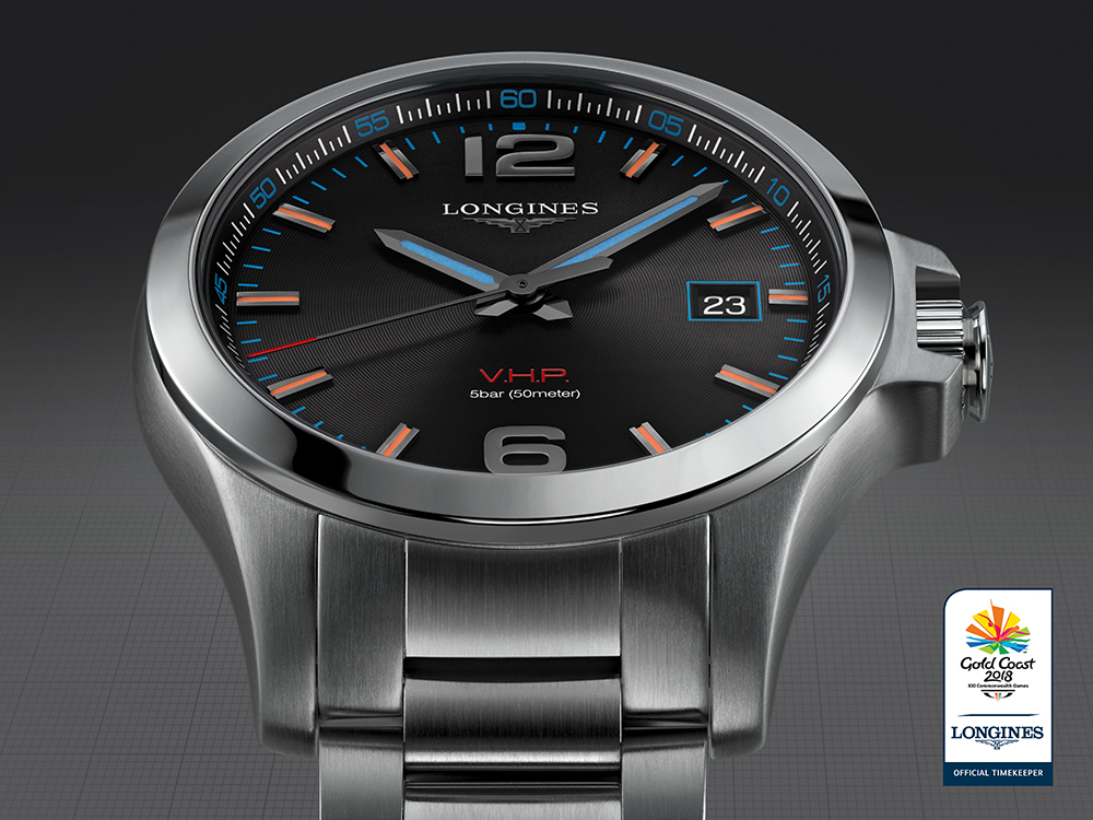 Модель Conquest V.H.P. Gold Coast 2018 Commonwealth Games – новинка от Longines в честь XXI Игр Содружества, которые объединили 70 стран. Модель создана специально для спортивных состязаний, официальным партнером и хронометристом которых является швейцарский часовой производитель.