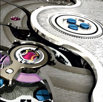 Потенциал новых часов удивителен: помимо традиционной стрелочной индикации времени часы имеют две вращающиеся перламутровые шкалы, которые находятся на краях циферблата. Эти две шкалы не только элемент дизайна, они функциональны, с их помощью можно определить местоположение Солнца и Луны относительно Земли.