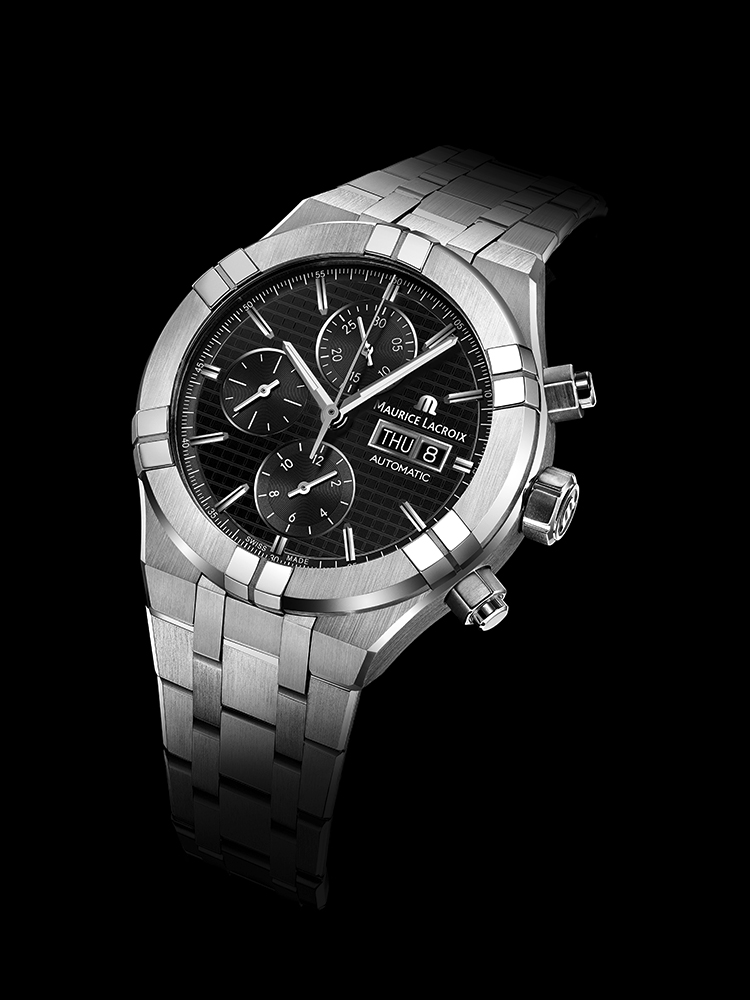 Часам AIKON Automatic трудно остаться незамеченными – каждый элемент от корпуса до браслета привлекает внимание. Благодаря динамичной игре света на гранях, контрасту полированных и сатинированных поверхностей новые модели притягивают взгляды. Все грани матового стального корпуса и шесть выступов безеля, ставшие визитной карточкой коллекции AIKON, идеально отполированы. В хронографе контраст текстур использован в отделке заводной головки и кнопок шестиугольной формы с отточенными гранями. В каждом изгибе этих часов ощущаются сила и энергия, которые определяют ярко выраженный мужской характер и авангардный дизайн – фирменный прием Maurice Lacroix. Часы крепятся на стальной браслет новой конструкции со звеньями в пять рядов. За счет своей гибкости и мягкости он идеально облегает любое запястье.