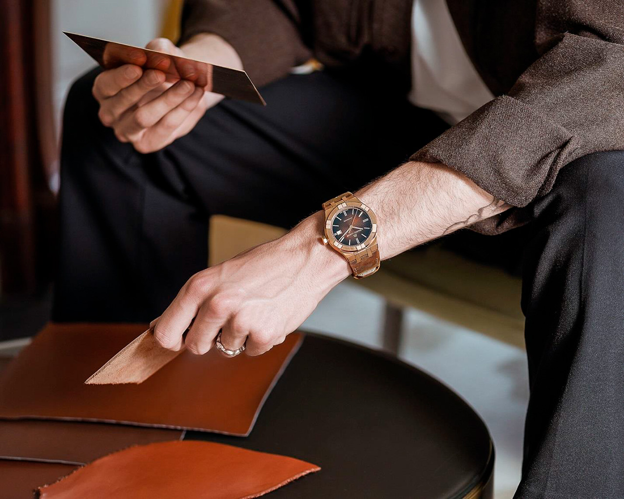 Там, где предыдущая 42-мм бронзовая модель имела глубокий синий циферблат с арабскими цифрами в 12, 6 и 9 часов, AIKON Automatic Bronze входит в новое пространство изысканности с градиентным цветом дымчатого шоколада. Текстура Clous de Paris добавляет объем и сложность, а логотип Maurice Lacroix из золота на 12 часах служит маяком блеска. Это игра света и тени, где граненые стрелки часов, минут и секунд в золоте скользят по индексам, которые тоже в золоте. Применение белых вставок Super-LumiNova® на индексах, а также часовых и минутных стрелках обеспечивает оптимальную читаемость даже в темном освещении.