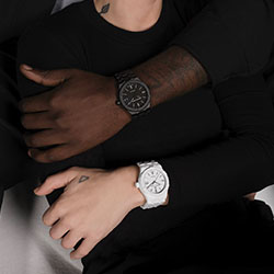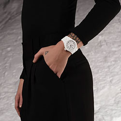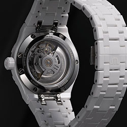 Коллекция AIKON Automatic Ceramic представлена в двух размерах (39 мм и 42 мм) и двух цветовых вариантах – матовом черном и глянцевом белом. Черный AIKON символизирует урбанистическую эстетику ночного города, а белая версия воплощает в себе чистоту и элегантность дневного света. Безель с характерными выступами придает модели динамичный облик, а интегрированный браслет гарантирует идеальную посадку на запястье.