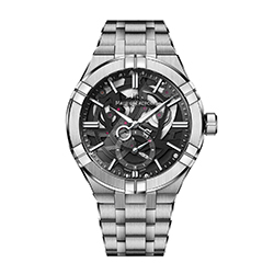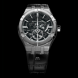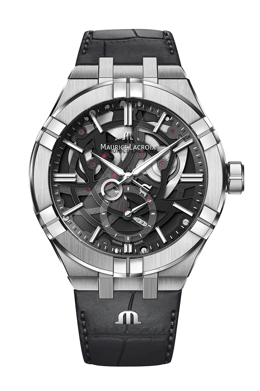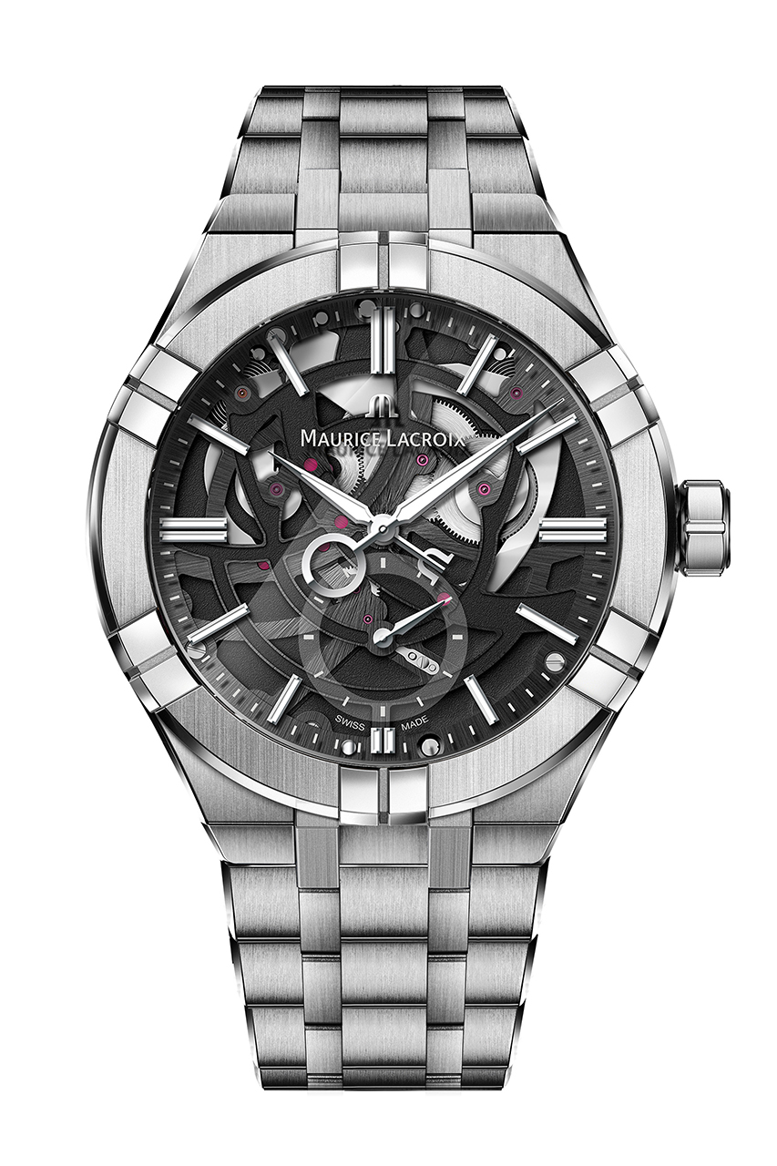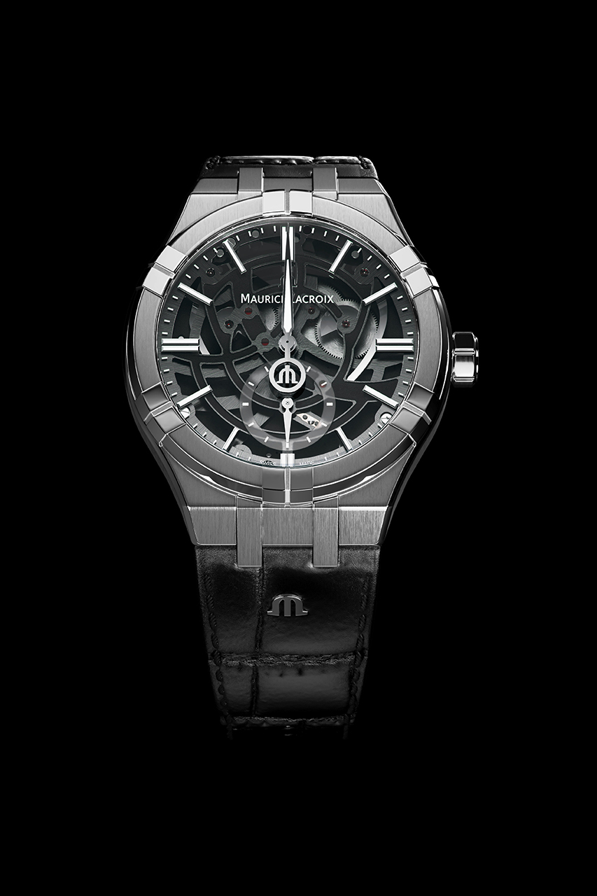 Выпуск коллекции AIKON в 2016 году стал для Maurice Lacroix возвращением к культовым дизайнерским кодам 90-х годов прошлого века, переработанным в эстетике нового тысячелетия. Узнаваемый облик AIKON складывался из геометрически выразительного силуэта корпуса, продуманного контраста матовых и полированных поверхностей. А элегантность этих часов тонко подчеркивали текстурные циферблаты с отделкой гильоше. Новый же AIKON Mercury отсылает, скорее, к эстетике коллекции Masterpiece, демонстрируя сложный скелетонизированный циферблат – характерную особенность часов Maurice Lacroix с 90-х годов. Сегодня часовые мастера мануфактуры представляют обновленный скелетон в современной эстетике, где сложный рисунок мостов подчеркнут отделкой круговым сатинированием и пескоструйной обработкой.
