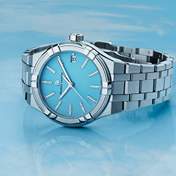 - Циферблат: Sunset Pink или Deep Sky Blue, бриллиантовые индексы