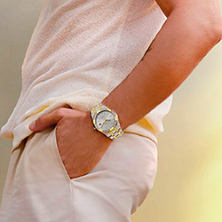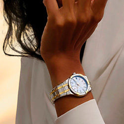 - Материал корпуса: Нержавеющая сталь с чередованием золотых и серебристых тонов