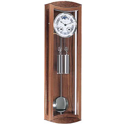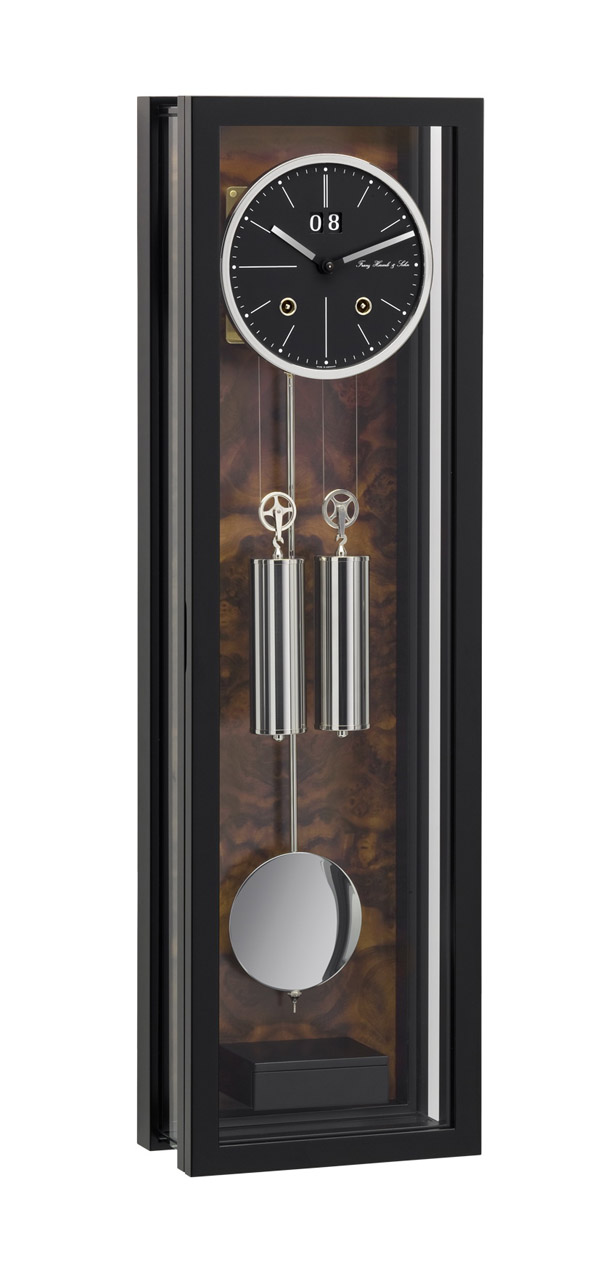 Эти механические часы могут быть сделаны из орехового или черного дерева с глянцевой полировкой, и сочетают в себе элегантность классических и изысканность современных часов. Механические часы Hermle W0058 имеют изящные шкивы и гири, а также шикарный циферблат, отображающий день недели, число, месяц и классическую фазу луны. Эта модель представляет собой великолепный пример ультрасовременного дизайна настенных часов. Механизм с восьмидневным заводом имеет спиральный гонг, анкер Грэхема, автоматическую синхронизацию боя. Никелевый маятник.