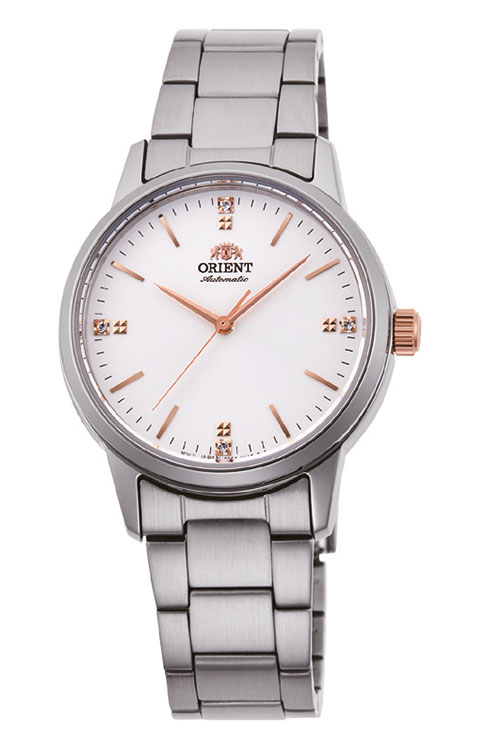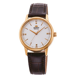 Orient Ladies Contemporary 3-Hands – лаконичные трехстрелочные механические женские часы, составляющие пару мужской коллекции ORIENT Stylish Contemporary. Стильный и аккуратный дизайн часов подчеркнут небольшим корпусом – всего 32 мм в диаметре, который подходит к любому случаю. Индексы в позициях 3, 6, 9 и 12 часов инкрустированы горным хрусталем. Часы оснащены механическим калибром с автоматическим и ручным заводом, за работой которого можно наблюдать через прозрачную заднюю крышку. Водостойкость составляет 10 бар.