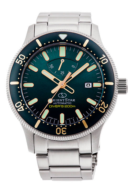 Ключевая особенность новых дайверских часов ORIENT STAR Sports – это новые цветовые решения. Темно-синие и зеленые градиентные оттенки циферблатов напоминают глубину и загадочность океана. В то время как безель, который включает в себя функцию предотвращения обратного вращения, имеет два цвета: темно-синий с красным, в народе называемый «Пепси-кола» и зеленый. Оба этих оттенка добавляют модные штрихи практичным часам.