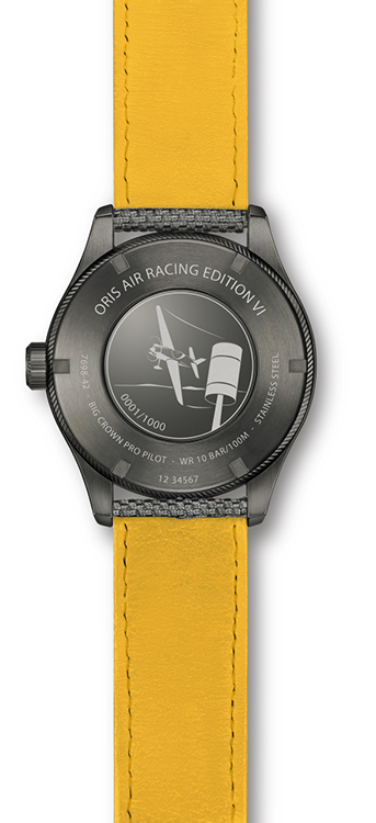 Новые часы «Oris Air Racing Edition VI Limited Edition» – шестой выпуск модели специальной серии «Air Racing»,** входящей в авиационную коллекцию Oris. Часы интересны тем, что их узнаваемый дизайн впервые использует сочетание жёлтого цвета, и цвета серой оружейной стали. Такое оригинальное цветовое решение отчётливо индивидуализирует новые часы, подчёркивает их авиационную генетику и исключительность, удостоверяемую лимитированным выпуском в количестве одной тысячи экземпляров.