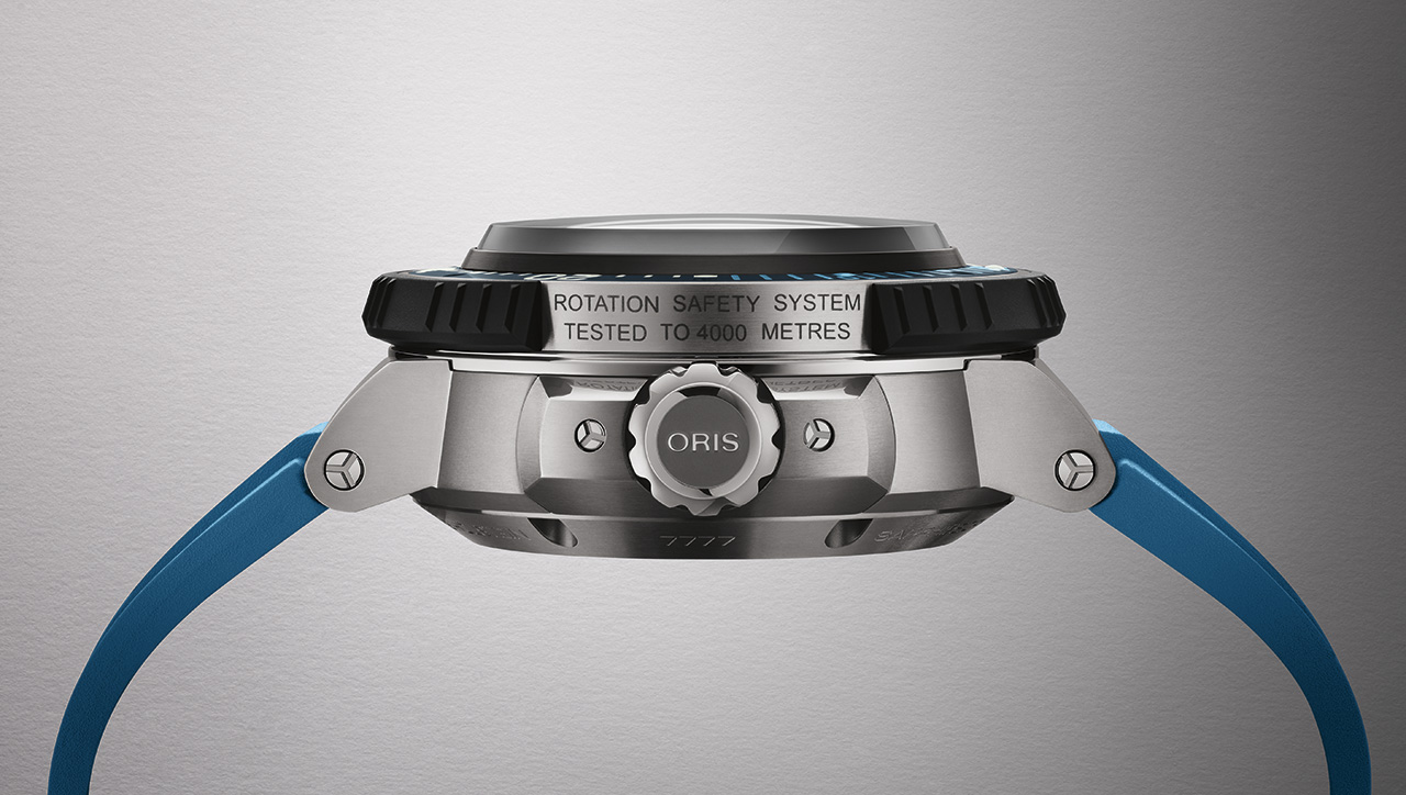 Компания Oris представляет свои самые водонепроницаемые часы для дайверов - AquisPro 4000m. Титановый корпус, способный выдерживать давление до 400 бар (4000 метров), делает их идеальным выбором для профессиональных дайверов. Часы оснащены уникальными технологиями, включая безопасную систему вращения безеля, созданную Oris совместно с экспертами-дайверами, а также инновационную систему регулировки ремешка.