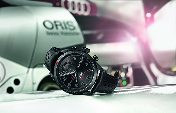 Имя «Oris» уже давно творчески связано с такими разными видами деятельности как джаз, подводное плавание, авиация, а также с рядом других технических видов спорта. Связь с автоспортом и традиция производства многофункциональных автогоночных часов прослеживается у Oris с 1970-х годов. Именно тогда был выпущен первый подобного рода хронограф «Chronoris». Участие Oris в мире автоспорта стало более активным после подписания договора о сотрудничестве с гоночной командой «Williams F1» в 2003 году. В 2014 году, компания «Oris» подписала трёхлетний контракт о сотрудничестве с именитой гоночной командой «Audi Sport» и теперь Oris имеет возможность способствовать впечатляющим успехам Audi в крайне жёстком и требовательном мире автогонок.