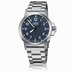 9. Oris Aviation BC 3 Advanced Day Date 01 735 7641 4165-07 8 22 03 Многокомпонентный корпус из матовой нержавеющей стали. Синий циферблат с арабскими цифрами одинаковой величины, условными часовыми индексами и стрелками, покрытыми люминесцентным составом «Superluminova BG W9» белого цвета. 3-рядный браслет из матовой нержавеющей стали с раскладывающейся стальной застёжкой. |