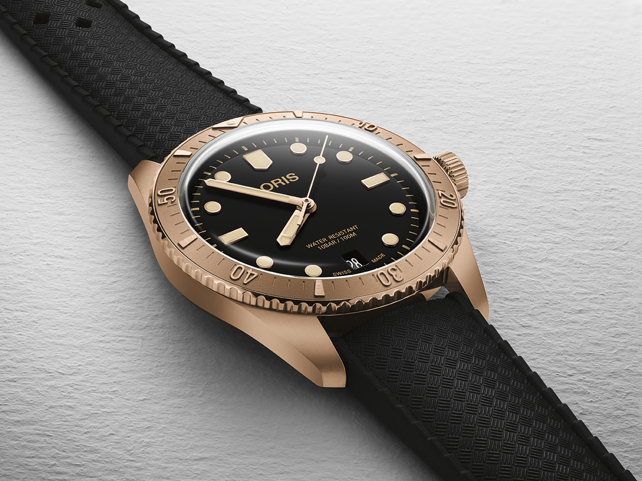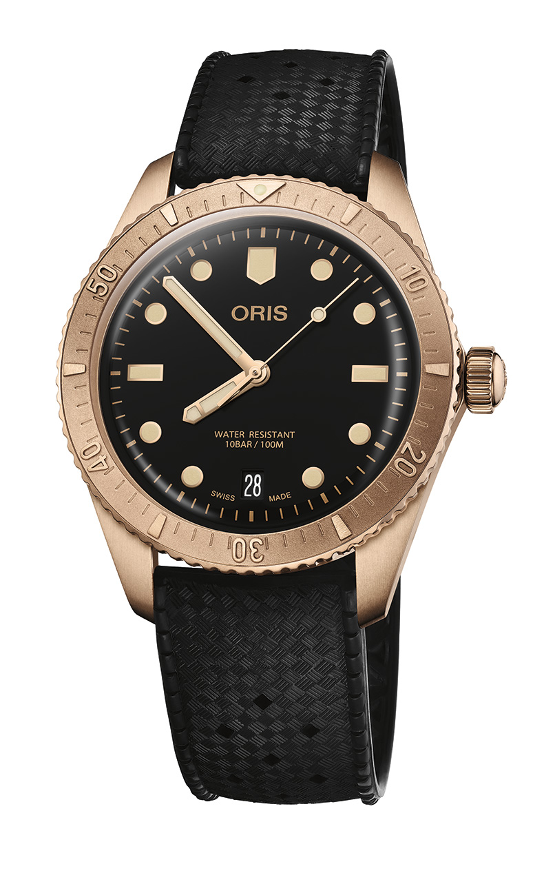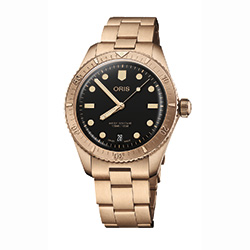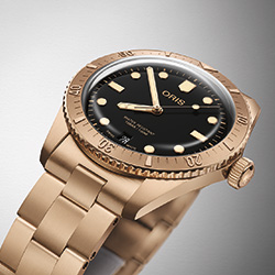 Погружение в ностальгию с винтажной палитрой - Oris возвращает одну из своих самых любимых моделей, Divers Sixty-Five Date, но с новым, смелым акцентом – в табачном оттенке. Вдохновленный предыдущими версиями, сочетавшими бронзовый корпус с яркими цветами, этот выпуск предлагает более зрелую, сдержанную цветовую гамму. Черный циферблат, резиновый ремешок или классический бронзовый браслет вместе с золотистыми часовой и минутной стрелками, с ярким люминесцентным покрытием создают элегантный и вечный стиль роскоши часовой классики. Это часы для тех, кто ценит все лучшее в новой версии любимых моделей Oris.