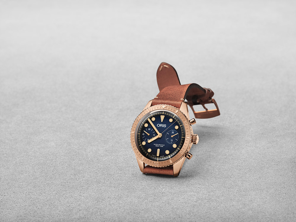 В честь человека с неординарным характером часовой производитель создает особые часы с уникальным характером. Часы Oris Carl Brashear Chronograph Limited Edition принадлежат коллекции Oris Divers Sixty-Five. Их корпус, ободок, заводная головка и кнопки выполнены из бронзы – экзотического материала в современном часовом деле. Компания второй раз применяет бронзу в качестве материала корпуса наручных часов. Он напоминает о подводном оборудовании из бронзы, которое использовал Брашир на своей службе. Бронза оставляет ощущение природной теплоты – это качество делает материал привлекательным для производства часов. Помимо этого бронза со временем покрывается патиной – на этот процесс влияют влажность воздуха, уровень кислотности пота владельца часов. Каждый из 2000 экземпляров со временем приобретает неповторимый внешний вид.