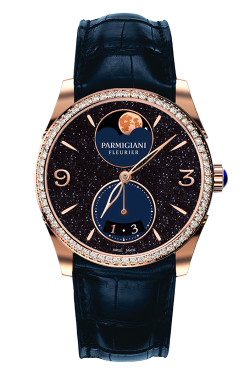 Начиная с выбора самых изысканных материалов и заканчивая тщательным изготовлением всех часовых деталей — каждому этапу разработки коллекции уделено самое пристальное внимание. Подчеркнутая бриллиантами различных размеров игра света, звездный блеск авантюрина или изящно закрепленное золотое кружево на перламутре — все продумано так, чтобы в любой момент времени каждый из этих уникальных часовых спектаклей удивлял своей красотой. Причем эту тонкую поэзию на всех представленных циферблатах может органично дополнить указатель фазы Луны. Как всегда компания Parmigiani Fleurier демонстрирует не только высочайший уровень часового искусства, но и свое непревзойденное мастерство работы с самыми утонченными природными материалами.