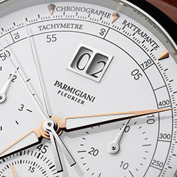 Основная идея производства – отсутствие дополнительных модулей – признак, который очень ценится знатоками часового мастерства. Каждый компонент должен быть встроен в механизм и удерживаться на одной платине. Поэтому дизайнеры начали работу с чистого листа, и после проведения большого количества исследований они разработали первый встроенный хронограф мануфактуры Parmigiani Fleurier. Этот процесс разработки занял более двух лет и был подкреплен 20-летним опытом марки, в том числе в изготовлении специальных инструментов. Этот часовой механизм с ручным подзаводом включает хронограф, сплит-функцию, большой указатель даты, и все это представляет одно единое целое.