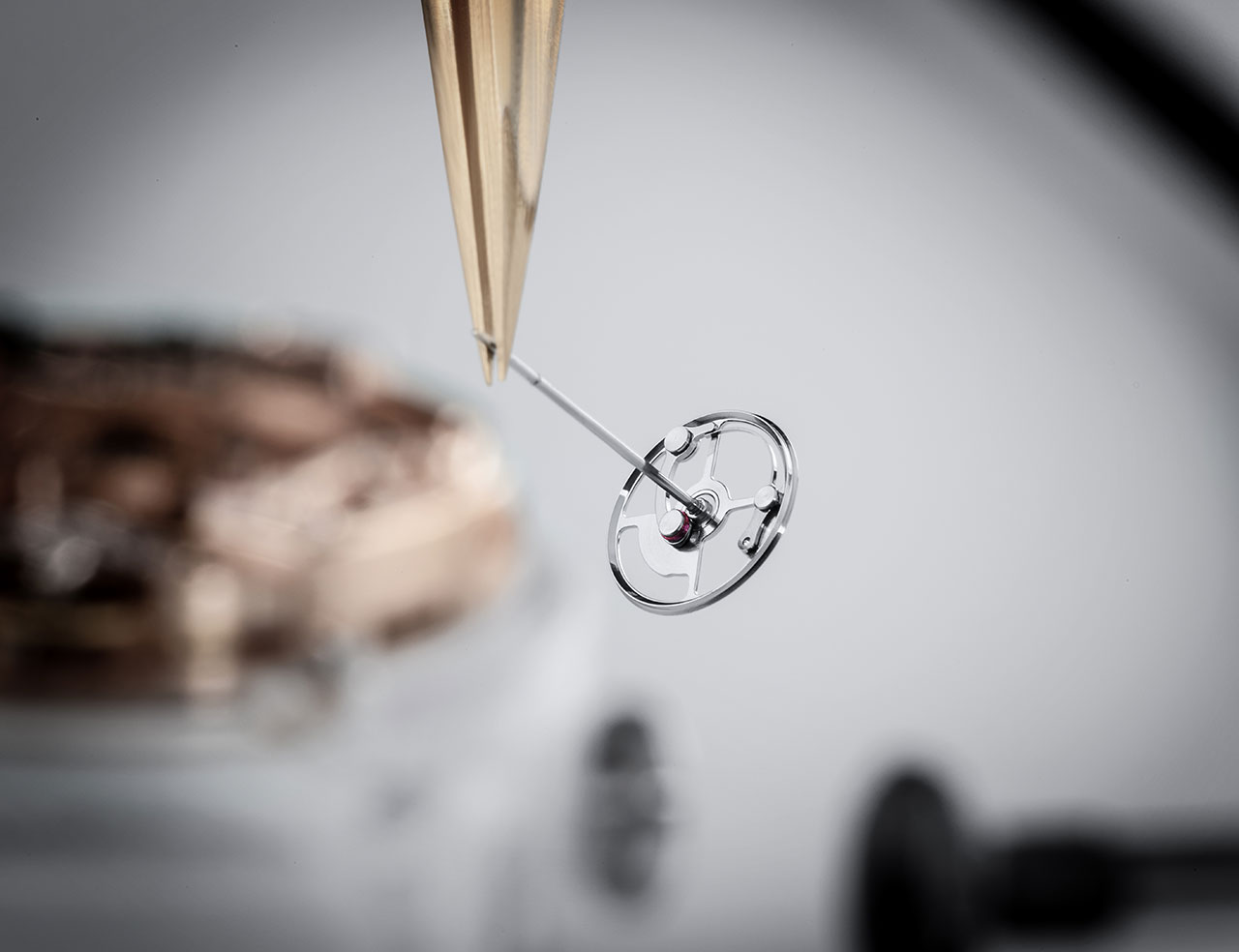 Благодаря двум точкам крепления на поперечном мосту баланс как регулирующий орган часового механизма приобретает большую надежность и стабильность. Благодаря этому креплению большой баланс с золотыми инерционными блоками не находится под влиянием внешних факторов, тем самым удовлетворяя требованиям спортивного хронографа. С другой стороны, поперечный мост за счет своей конструкции может регулироваться по высоте и очень точно подгоняться к остальным деталям часового механизма. Это гарантирует абсолютную точность сборки.