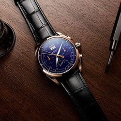 помещены вверх от горизонтальной оси между отметками «9 часов» и «3 часов». Такое расположение требует усложнения конструкции механизма, но делает все показания циферблата чрезвычайно четкими, а также придает ему уникальный внешний вид.