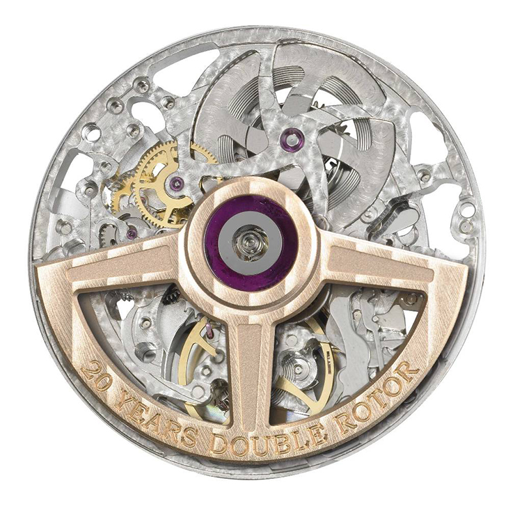 Механизм, состоящий из 100 деталей, собран на 26 камнях (двадцать шестым камнем является крупный рубиновый подшипник в центре с пониженным коэффициентом трения). Он имеет следующие параметры: посадочный диаметр – 25,6 мм, общий диаметр – 26,2 мм, толщина вместе с ротором – 4,95 мм; частота баланса механизма – 28800 пк/ч (4 Гц), запас хода при полном заводе – 42 часа. Части механизма соединены воронёными винтами. Двойной ротор имеет новый дизайн в виде мануфактурного скелетонирования. Он изготовлен из 18-каратного розового золота, его пустотелая часть украшена узором «Côtes de Genève» («женевские волны») и выгравированной памятной надписью: «20 Years Double Rotor». Платина и мосты механизма отделаны круговым зернением и родиевым покрытием. Механизм обеспечивает функции часов, минут и секунд посредством центральных стрелок.