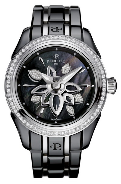 На этот раз фирма "Perrelet S.A." представила изящную модель, которая имеет два варианта исполнения: "бриллиантовый цветок" насыщенного чёрного цвета и его белоснежный аналог в корпусах, выполненных из специальной высокопрочной керамики, и украшенных бриллиантами. Изменение материала изготовления нисколько не умалило изысканный дизайн и безупречное качество женских хронометров, они по-прежнему благородны и надёжны.