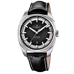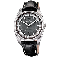 | 2. Perrelet LAB A 1100/2: стальной корпус, антрацитовый циферблат, чёрный кожаный ремешок. | |