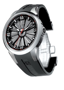 Элегантная женская модель послужила основой для создания фантастической мужской модели часов «Turbine». Эти часы надолго стали своеобразной визитной карточкой бренда. На этот раз уже весь циферблат превратился во вращающуюся карусель с двенадцатью косо заострёнными крыльями, внешне похожими на форму лопастей турбореактивного двигателя самолета. Такая конструкция дала прибавочное ускорение дополнительному сектору, вследствие чего даже от небольшого усилия сектор начинал вращаться с огромной скоростью. Трёхмерный циферблат с «турбиной» постоянного вращения приобрёл неповторимый визуальный объём благодаря контрастной чёрно-оранжевой или чёрно-зеленой гамме, которая подчёркивала наклон лопастей ротора.