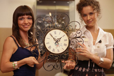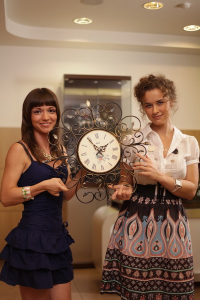 Живя в 19 веке, Екатерина и Ксения легко могли бы стать музами великого романиста, писавшего про чувства, красоту и мягкий румянец на щеках "юной девы". Им бы оказаться в утопающем цветам саду на фоне едва брезжащего солнца с бокалом пузыристого шампанского и томиком любимой книги. И чтобы непременно за изгородью пел песни бриз и баюкало море. А время... их время - романтичное, легкое, нежное, как летний вечер в Провансе. Изящным девушкам очень подошли часы Hermle в оригинальном кованом корпусе. Циферблат цвета слоновой кости с римскими цифрами искусственно состарен и украшен цветочным узором, а счет часам и минутам ведут кованые центральные стрелки, выполненные в одном стиле с корпусом.