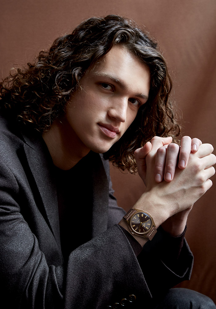 Часы коричневого цвета оснащены броским винтажным ремешком NATO, а модель в бронзовых тонах — коричневым ремешком из искусственно состаренной кожи. Это еще одна линия контрастов данной модели и прекрасный пример идеального гармоничного сочетания современных и традиционных материалов.