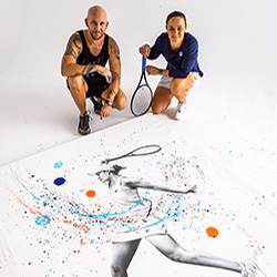 Работы Эшвина, выдающегося австралийского художника и чертежника, появлялись на выставках по всей стране. В его произведениях интересным образом сочетаются монохромные структуры и красочные детали, которые отражают сложность человеческих эмоций и связей. В рамках этого сотрудничества Эш под руководством художника придаст больше цвета и энергии арт-проекту, отбивая теннисные мячи, наполненные краской, в холст, чтобы дополнить монохромную структуру Эшвина.