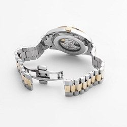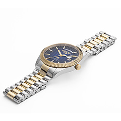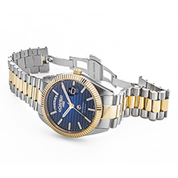 С первого взгляда PRIMELINE DAYDATE II очарует незаурядными деталями дизайна и благородным внешним видом. Он включает вертикальные «Женевские» полосы на механизме, рифленый безель и заводную головку, а также легко читаемый циферблат с элегантными стрелками и индексами. Полукруглая апертура дня недели на отметке «12 часов» и малое окно с датой в положении «3 часа». Частично светящиеся стрелки и продолговатые индексы облегчают считывание времени даже в темноте. Тонкая центральная секундная стрелка и микрокруглые минутные метки завершают образ циферблата.