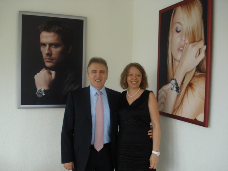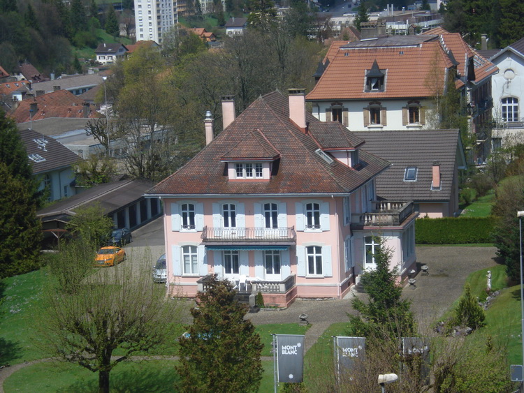 На этой фотографии я вместе с Франсуа Тибо - президентом компании Tissot. И стоим мы на фоне имиджей Tissot, которыми украшены помещения всей фабрики. Здесь нас снова ждала экскурсия в часовой музей - но уже собственно музей Tissot. Экскурсоводом выступил сам господин Тибо. Сначала нам показали новинки базельской выставки. Потом нас учили мерчендайзингу новых моделей: рассказывали, какое оборудование лучше использовать для их демонстрации. А во время перерыва с веранды нам показали маленький домик - розовый и уютный - в этом доме при фабрике жил один из последних представителей семьи Tissot. Последними оставались правнуки основателя - Мария и Поль - это дом Поля.