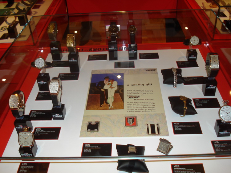 В Музее часов компании Tissot находятся первые в мире автоматические часы, и антимагнитные, и в корпусах из гранита, дерева и перламутра, и замечательный экземпляр механических часов 1975 года IDEA 2001, где все детали изготовлены из пластика, и часы с двойной индикацией, и кварцевые с автоподзаводом.