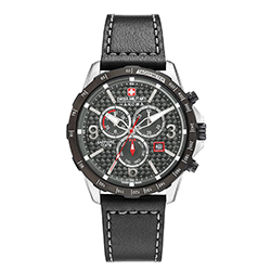 | 3. Swiss Military Hanowa Ace Chrono 6-4251.33.001: стальной корпус; безель, заводная головка и кнопки хронографа с чёрным PVD-покрытием, чёрно-серый циферблат, чёрный ремешок. | |