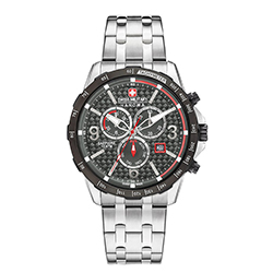 | 4. Swiss Military Hanowa Ace Chrono 6-5251.33.001: стальной корпус; безель, заводная головка и кнопки хронографа с чёрным PVD-покрытием, чёрно-серый циферблат, стальной 5-рядный браслет. |