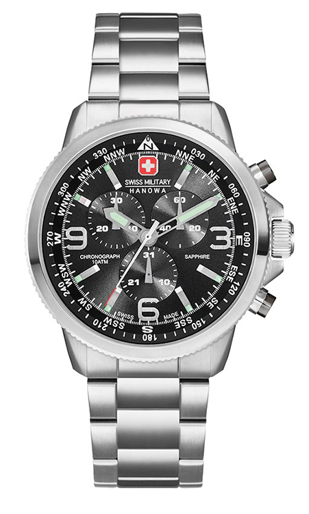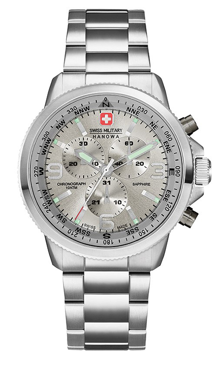 | 1. Swiss Military Hanowa Arrow Chrono 6-5250.04.009: стальной корпус, серебристый циферблат, стальной браслет. | |