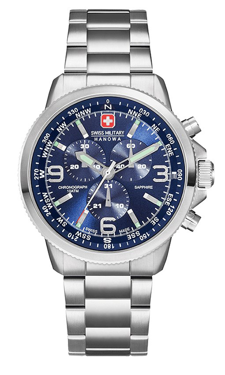 | 2. Swiss Military Hanowa Arrow Chrono 6-5250.04.003: стальной корпус, голубой циферблат, стальной браслет. | |