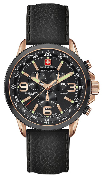 | 4. Swiss Military Hanowa Arrow Chrono 6-4224-09-007: стальной корпус с PVD-покрытием из розового золота, чёрный циферблат, чёрный ремешок. |