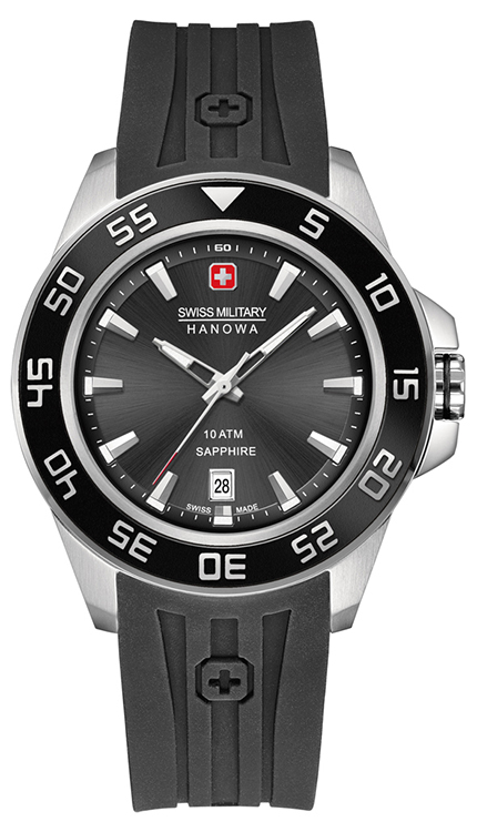 - Swiss Military Hanowa Sword 6-4221-04-009: серебристый корпус, чёрный безель, серый циферблат, черный ремешок.