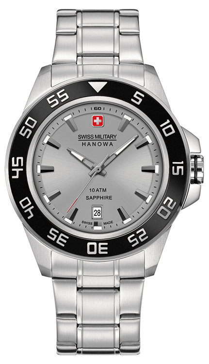 - Swiss Military Hanowa Sword 6-5221-04-007: серебристый корпус, чёрный безель и чёрный циферблат, серебристый браслет.