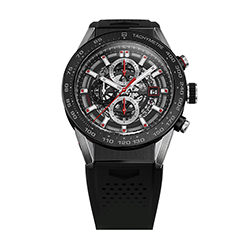 Новый хронограф «TAG Heuer Carrera - Calibre Heuer 01» комплектуется стильным перфорированным каучуковым ремешком чёрного цвета, снабжённым раскладывающейся застежкой и кнопками, обеспечивающими безопасное ношение часов.