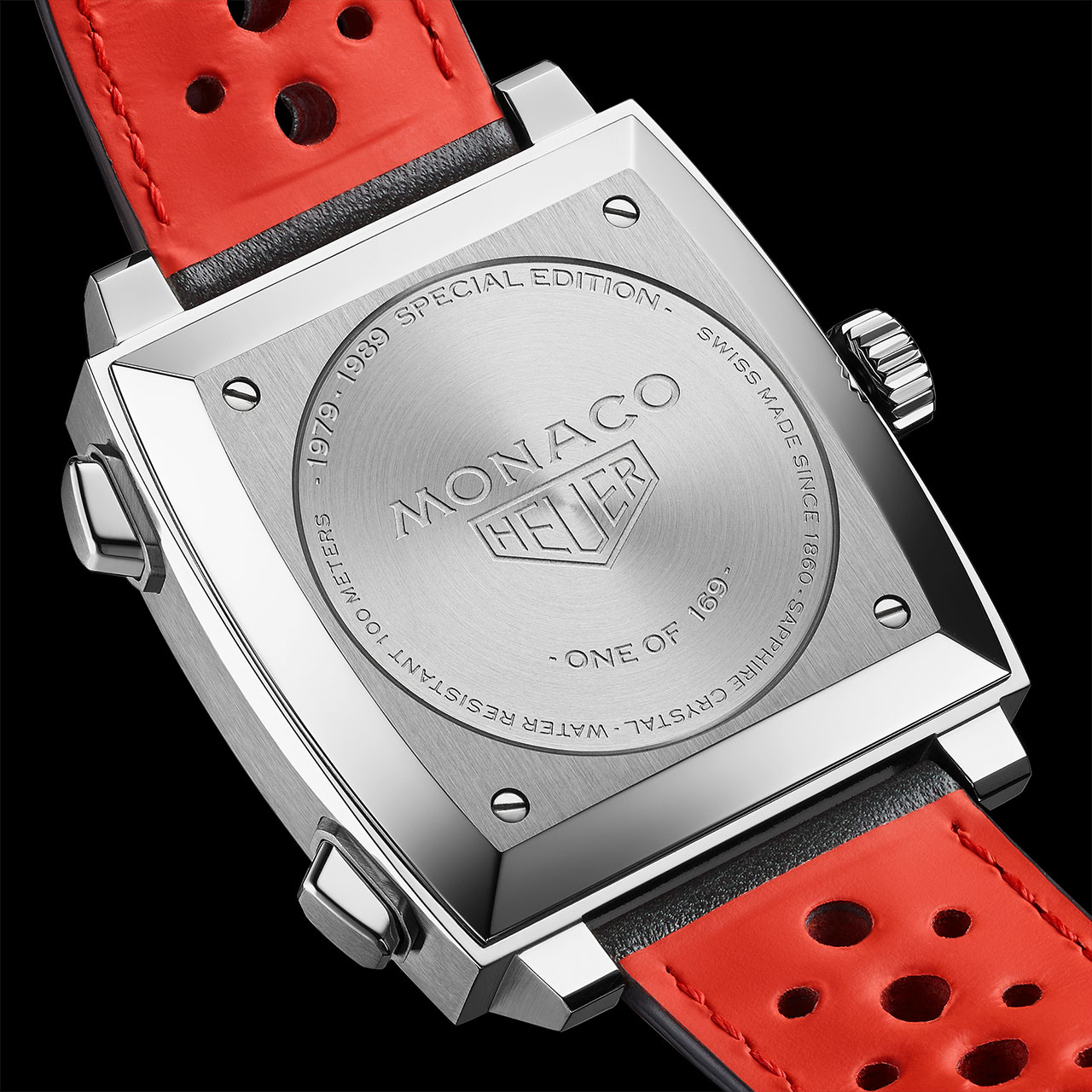 На заднюю крышку нанесены гравировки «Monaco Heuer», а также «1979-1989 Special Edition» и «One of 169». Спортивный дизайн часов напоминает оригинальную модель, задняя крышка из нержавеющей стали украшена узорами. Внутри корпуса находится знаменитый калибр 11, современная версия механизма хронографа с автоматическим подзаводом, который дебютировал в оригинальных Monaco в 1969 году. Часы выпущены ограниченным тиражом 169 экземпляров.