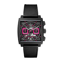 Monaco Chronograph выделяется своим эффектным дизайном. Скелетонизированный циферблат в ярком розовом оттенке, дополненный контрастными акцентами, отражает калейдоскоп цветов Лас-Вегаса. Четкие индексы и стрелки с люминесцентным покрытием обеспечивают отличную читаемость, а хронограф подчеркивает функциональность модели. Корпус из нержавеющей стали с культовой квадратной формой, характерной для линейки Monaco, дополнен сапфировым стеклом и водонепроницаемостью до 100 метров, что делает часы надежным спутником в любой ситуации.