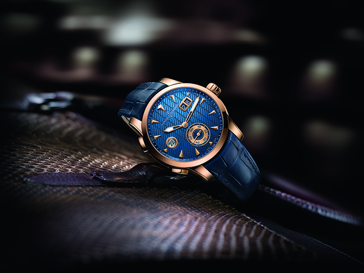 | 3. Модель Dual Time Manufacture 3346-126LE/93 лимитированная серия 500 экземпляров: корпус из 18-каратного розового золота, синий циферблат, синий ремешок из кожи аллигатора. | |