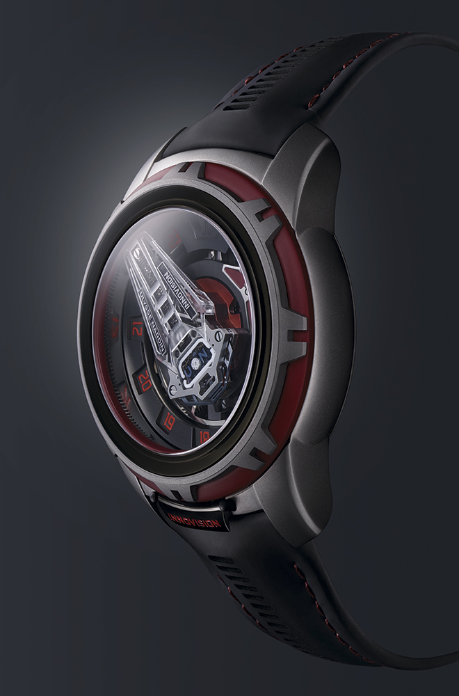 Наряду с уникальным электронным дисплеем концепция InnoVision 2 предполагает наличие минутной стрелки, не имеющей аналогов на рынке. Это трехмерная стеклянная стрелка вырезана прецизионным лазером, позволяющим добиться такой точности обработки, при которой допуски не выходят за пределы от трех до пяти микрон. Тонкая металлическая пластина служит основой для хрупкого стекла и придает стрелке необходимую прочность даже при очень сильных ударах.