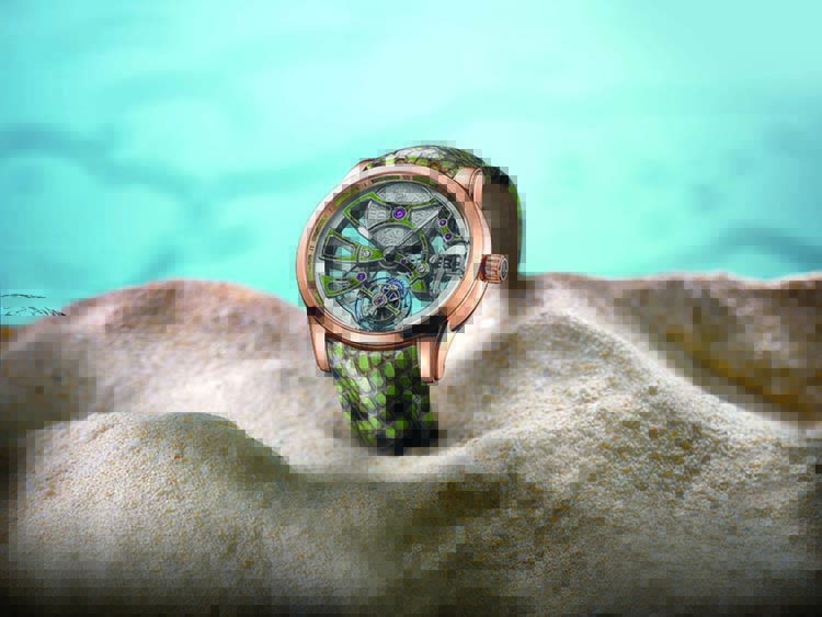 Модель Weekend Aventurine от Perrelet — это часы, в которых природа и искусство часового мастерства соединились в одном произведении.